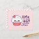 Cute cupcake with happy face and the quote "Life is short, eat cupcakes often."