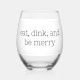Eat Dink and Be Merry Pickleball Stemless Wine Glass