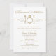 Antique gold and white wedding rehearsal and rehearsal dinner invitation design with an eat, drink, and be married theme in elegant and vintage mixed typography with diamond engagement ring place setting scroll feature.