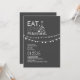 Rustic chalkboard bridal shower invitations "Eat Drink and be Married" with cute and and casual string of lights. Perfect for outdoor or for modern bridal shower with casual and trendy design.