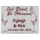 This is a cutting board with a "Eat, Drink, & Be Married" theme with wine glass artwork.   It includes text fields for a saying, names, and dates.  Message MineByDesign and we can help customise any design you envision.