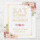 Eat Drink and Be Married Elegant Chic Floral Gold Wine Label