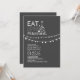 Rustic chalkboard engagement party invitations "Eat Drink and be Married" with cute and and casual string of lights. Perfect for outdoor or for modern engagement party with casual and trendy design.