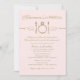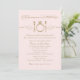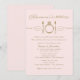 Pastel pale pink and antique gold wedding rehearsal and rehearsal dinner invitation design with an eat, drink, and be married theme in elegant and vintage mixed typography with diamond engagement ring place setting scroll feature.