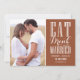 Announce your wedding date to family and friends with this customisable save the date announcement. It features modern calligraphy and simple typography. Personalise this terracotta save the date postcard by adding your own photo and wedding details. This photo save the date card is also available in other colours.