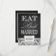 Elegant Eat Drink and be Married Wedding RSVP card with black and white damask and silver accents.