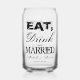 Eat drink and be married wedding soda can glasses with custom name. Stylish typography template with name of bride and groom plus date of marriage. Trendy table decor for party drinks. Also great as party favour.