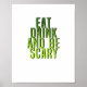 Eat Drink And Be Scary Funny Quote: A witty Halloween quote design full of humour and fun. Ideal for relaxed festive looks. Clever, bright, and engaging.