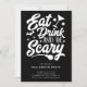 This stylish invitation features a black and white typography design with the words "Eat Drink and be Scary. It's the perfect way to add a touch of Halloween fun and sophistication to your party and let your guests know they're in for a frightfully good time.