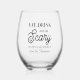 Eat, drink and be scary! These festive, spooky-chic Halloween party favour stemless wine glasses feature two lines of custom text.