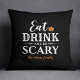 Eat Drink and Be Scary Modern Typography Halloween Cushion