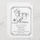 This design, called Eat Drink and Rehearse Wedding Rehearsal Dinner Invitation, has a bright white background with a thin black filigree border with curved corners. At the top in three different fonts it says, "Eat Drink and Rehearse." Your text can be customised just below that. Perfect for your wedding rehearsal.