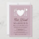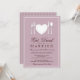 Lovely white silverware, and china dishes in the shape of hearts - invites your guests to an Bridal Shower celebration of the bride-to-be with "Eat, drink and be Married!" White elements and dark chocolate brown typography, on a soft lavender purple background, this design is understated and simply elegant.