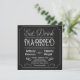Square Chalkboard Rustic Wedding Invitations -- Stylish and classy clean lines with a simple border, small floral motif and vintage scrolls. Refined retro typography makes a bold and eye-catching black and white wedding invitation appropriate for romantic country or urban settings. Add your names and wedding info in this easy to use template. Elegant mixed chalk and letterpress style typography can be modified for your formal or semi-formal wedding theme. Square invitation style is perfect for trendy modern weddings with a fun touch of sophisticated charm for the traditional bride and groom at an affordable price. Please contact us for help with customisation if you need additional room for your wedding details.