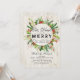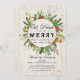 Eat, Drink, and Be Merry Christmas Party Invitation - Red & Green Holly Christmas Floral Wreath, String Lights and Rustic Wood.