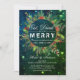 Black and White String Lights and Holly Christmas Floral Wreath - Eat, Drink, and Be Merry Calligraphy Typography Script Christmas Party Invitation.
