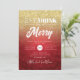 Eat, Drink Be Merry Gold Red Bokeh Holiday Xmas Invitation