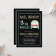 This bright invitation with a funny ugly winter sweater with pale yellow and light blue funny text eat, drink and be ugly. The reverse side is black with a fun word game. Easy to personalise.