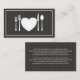 Include additional information for your guests on this lovely coordinating card that can be inserted with your rehearsal dinner invitation.  On the front find the matching white silverware, and china dishes in the shape of hearts and on the back add all your special instructions or information. With white elements and typography, on a subtly striped tuxedo grey background, this design is simply understated and elegant.