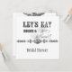 Looking for a great bridal shower invitation? Elegant and fun fonts announce the message, "Let's eat, drink and get married!" on a delightful whimsical Wedding Invitation Ensemble. In a clean, crisp, black and white colour palette it's the best of vintage with a modern twist. The front side has the text and your names with your wedding date. On the reverse side are two printer's ornaments with elegant hand calligraphy font ampersand and the text "Celebrate with us" in unique and fun fonts along with your couple's shower invitation information. There is a complete suite of products available with this design and we can do it in any colour combination(s) you desire.