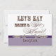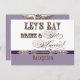 Elegant and fun fonts announce the message, "Let's eat, drink and get married!" on a delightful whimsical Wedding Invitation Ensemble. In a clean, crisp, lavender, plum purple, chocolate brown and white colour palette it's the best of vintage with a modern twist. The front side has the text and your names with your wedding date. On the reverse side are two printer's ornaments with elegant hand calligraphy font ampersand and the text "Celebrate with us" in unique and fun fonts along with your wedding reception invitation information. There is a complete suite of products available with this design and we can do it in any colour combination(s) you desire.