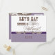 Elegant and fun fonts announce the message, "Let's eat, drink and get married!" on a delightful whimsical Maid of Honour invitation postcard. In a clean, crisp, lavender, plum purple, chocolate brown and white colour palette it's the best of vintage with a modern twist. Easily customise your rsvp information on the reverse side.