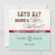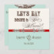 Elegant and fun fonts announce the message, "Let's eat, drink and get married!" on a delightful whimsical Wedding Invitation Ensemble. In a warm, retro colour palette of vintage red, aqua blue, cream and chocolate brown - it's the best of vintage with a modern twist. The front side has the text and your names with your wedding date. On the reverse side are two printer's ornaments with elegant hand calligraphy font ampersand and the text "Celebrate with us" in unique and fun fonts along with your wedding invitation information. There is a complete suite of products available with this design and we can do it in any colour combination(s) you desire.
