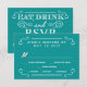 Eat, Drink, and be Married -- Vintage style rustic country wedding invitation personalised RSVP Response Cards -- Swirly, curly scrolls and old-fashion woodcut typography in white on tropical sea teal blue background. Add the bride and groom names and wedding and reply dates in this easy to use template. Elegant but fun and whimsical, retro hand-written style can be can be easily modified for your formal or semi-formal wedding themes. Casual modern country style is perfect for trendy rustic weddings with a fun touch of sophisticated charm for traditional couples. Please contact us for help with customisation if you need additional room for your wedding details. Other sizes and styles available, along with matching invitations, postage stamps, coordinating accessories and shower favours.