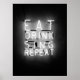 This black and white poster print features a glowing neon sign with the words Eat Drink Sing Repeat, creating a bold and modern statement for any space. Perfect for music lovers, party rooms, home bars, or lounge decor, this striking design adds a touch of nightlife energy to your walls. Printed with high quality detail, it makes a unique gift idea for friends who enjoy fun gatherings, celebrations, and stylish interiors. A versatile art piece that blends contemporary design with a lively message, making it an eye catching addition to any modern home or creative space.