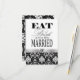 Eat Love and be Married - Elegant Black and white damask wedding RSVP Card. With diamond heart accent.