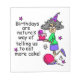 Birthdays are nature's way of telling us to eat more cake! Stella in a birthday hat with a cake on humourous birthday T-shirt, birthday buttons, cards, stickers, magnets, keychains, mugs, tote bags, ornaments, and other funny birthday items.