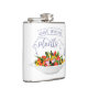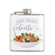 The flask itself is fine. It’s a cheap flask, obviously bought in bulk, however am prepared to overlook that. Given that it is a personalized item, I would have liked to have seen gift boxing instead of the generic packaging. Terrible printing, and/or quality. It’s a cheap, tacky vinyl. It is not cut straight and is also applied in a way that it is overhanging the bottom, causing the glue to catch on items and it will eventually roll and tear, damaging the wrap.
