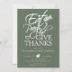 Celebrate the spirit of Thanksgiving with our "Eat Pray and Give Thanks" invitation, designed to set the perfect tone for your gathering. This elegant invitation features a warm and inviting design, encouraging guests to come together in gratitude and joy. Ideal for family dinners, friends' gatherings, or community events, it beautifully encapsulates the essence of the holiday, making it a delightful addition to your festive preparations.