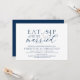 Modern Romantic Calligraphy, Navy Blue Script, Wedding Rehearsal Dinner invitation card (Eat, Sip and be married). It is perfect for your wedding rehearsal dinner celebration party, before your best day. Add your details in matching lettering.