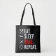 Eat. Sleep. Bake. Repeat. This funny quote baking accessory is a great gift for a man, woman, teens & kids who love to bake in the kitchen. Also perfect for a baker or a bakery worker. If you're a home baker, love the culinary arts, and love to prepare delicious bread, cookies, muffins, cakes or cupcakes in the oven, then this humourous design is for you.