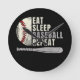 Eat Sleep Baseball Repeat Funny Baseball Player Round Clock
