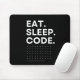 eat sleep code Black and White Minimalist Mouse Pad