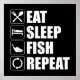 Eat. Sleep. Fish. Repeat. This funny fishing design is a great Christmas, birthday, Father’s Day or Mother’s Day gift for a friend or family member who’s a fisherman, & loves to go out on a lake or river in a boat or on a dock to fish. Do you love to catch fish? Do you like to go fly fishing, ice fishing, bass fishing or freshwater fishing? If so, then this fishing humour funny quote design is for you!