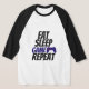 the perfect tee for every true gamer. show off your daily grind with this bold "eat sleep game repeat"design. great for consle fans , night players and gaming addicts