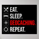 Eat. Sleep. Geocaching. Repeat. This funny quote geocaching accessory is great for geocachers who love to go hiking in the outdoors and go hunting for a hidden geocache. If your hobby is to hike in the woods & forest and use a gps & map to help you find hidden treasure, or you like to create and hide geocaches yourself, then this design is for you!