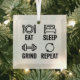 Eat. Sleep. Grind. Repeat Glass Tree Decoration