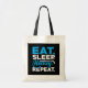 Hockey players will love this hockey themed tote bag with text of white and blue on a black background that reads Eat Sleep Hockey Repeat! This hockey tote bag is a perfect gift for anyone you know who loves hockey!