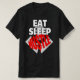 This image features a graphic design with the words "Eat Sleep Hustle" in bold, white, and red lettering. "Eat" and "Sleep" are stacked above "Hustle", which is written in a larger, red font and angled diagonally. The design evokes a sense of energy and drive, implying that hard work and dedication are key to success. The use of bold colours and dynamic typography creates a visually striking and impactful message.