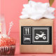 Road sign style icons depicting the basic necessities of life. Food service and lodging pictures for eating and sleeping, with an extra large square showing a rider on a four wheeler all terrain vehicle, or "Quad" as its commonly known. For all motorcross enthusiasts and backroad mudders. Black white and grey cool design is suitable for mens, ladies and children's styles in all colours, as is also available on various gift items.