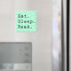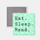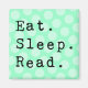 An eat, sleep and read typewritten design for book lovers against a customisable polka dot background. Choose "customise it" to make changes.