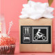 If you eat, sleep, live and breathe motorcycles, this cool road marker signs with icon style images is perfect. Black, white and dark grey colours and easily recognised symbols keep it simple. Food service and accomodations graphics on one side, and an extra large picture depicting a motorcycle rider. Perfect for hardcore motorcross racers, badass bikers and rebel bikerchicks.