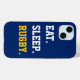 This deep blue phone case is designed for the ultimate rugby fan, emblazoned with the bold statement "EAT. SLEEP. RUGBY." in bright yellow letters. The case not only protects your device but also serves as a testament to the wearer's passion for the rugged sport of rugby. It’s an ideal accessory for anyone whose day revolves around the thrill of the game, whether they're a player, a coach, or a dedicated supporter.