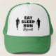 Eat Sleep Run Repeat trucker hat for runner. Custom cap for friends, family, dad, husband, uncle, grandpa, brother, marathon runner, athlete etc. Running human silhouette. Colours can be changed.