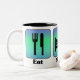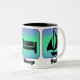 Eat Sleep Sail mug, with cool graphics in bright colours & a silhouette of a sailboat! Available on any style mug.