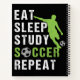 Stay motivated and organised with this soccer-themed notebook featuring the bold phrase "Eat Sleep Study Soccer Repeat." Perfect for students, athletes, and soccer enthusiasts, this notebook is ideal for jotting down notes, planning your goals, or sketching ideas. A practical and stylish accessory for school, work, or everyday life—great for soccer fans of all ages!